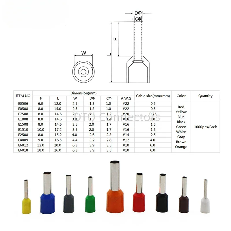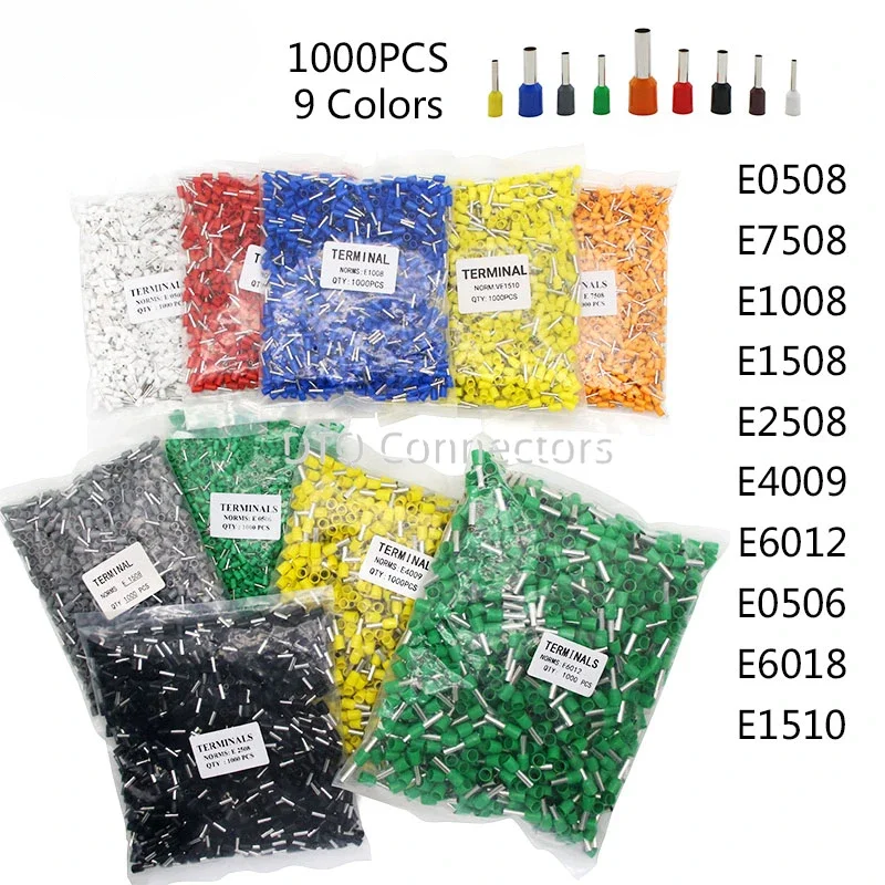 1000PCS/Pack Insulated Cord End Terminal Crimp E0508 1008 1508 7508 2508 Pressure Terminal Ferrules Crimping Terminals Tubular