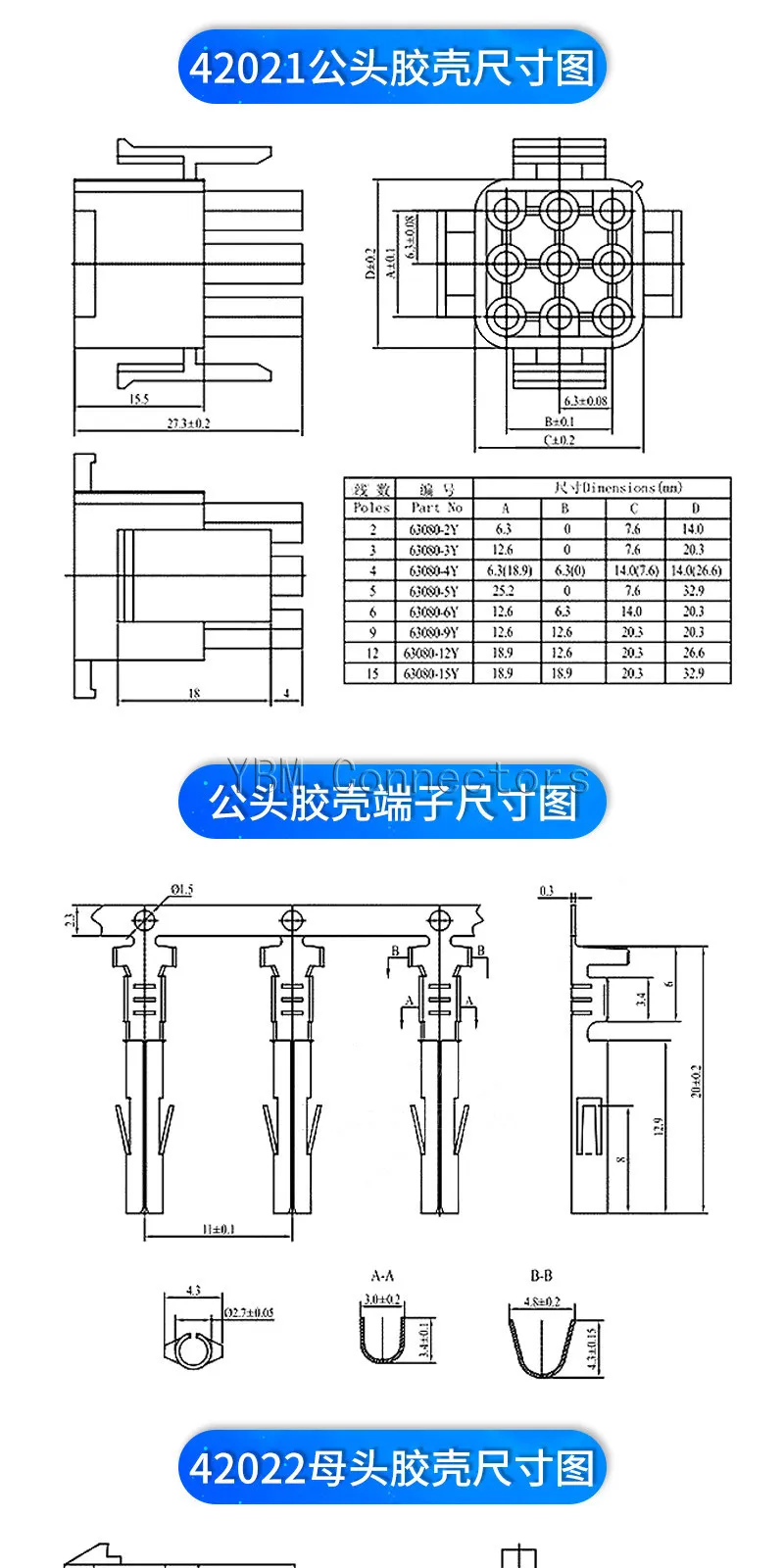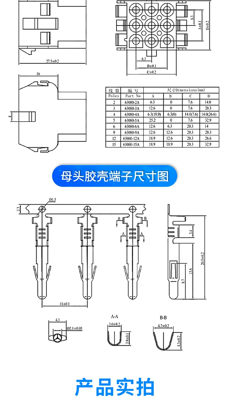 10PCS 63080 Male And Female Docking Connector Plug-In Rubber Shell Terminal 6.3mm for Car Elevator 42021