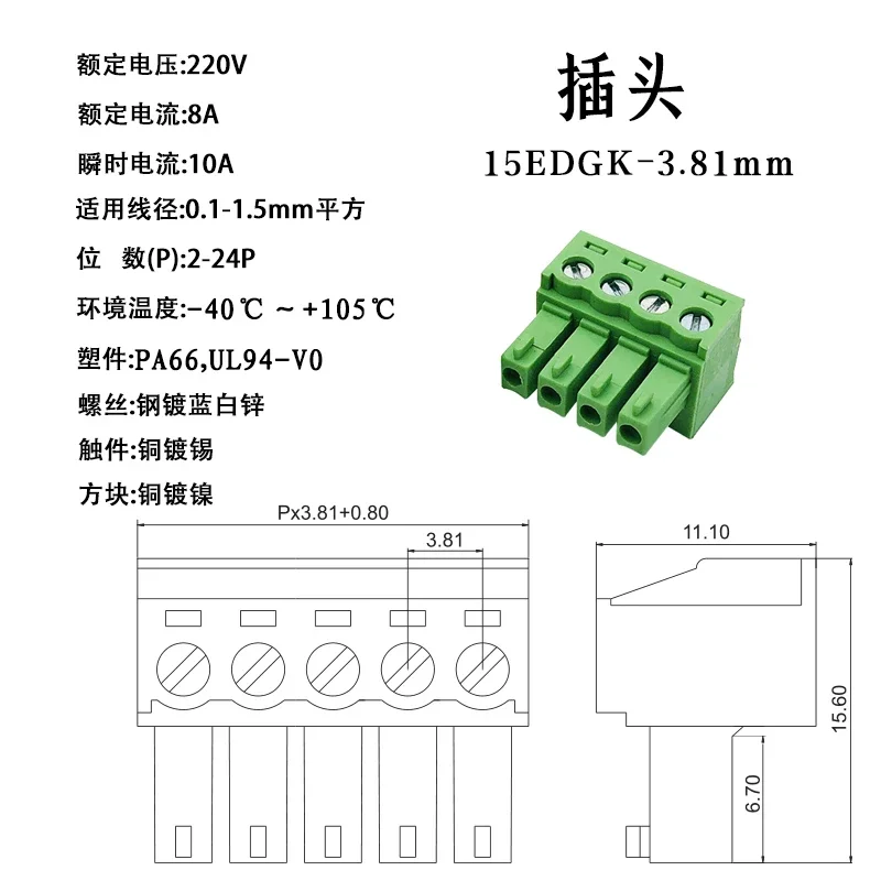 10Pcs15EDG 3.81MM KF2EDG 3.81 PCB Screw Terminal Block Connector PLUG PIN HEADER SOCKET 2/3/4/5/6/7/8/9/10/11/12/13/14/15/16P