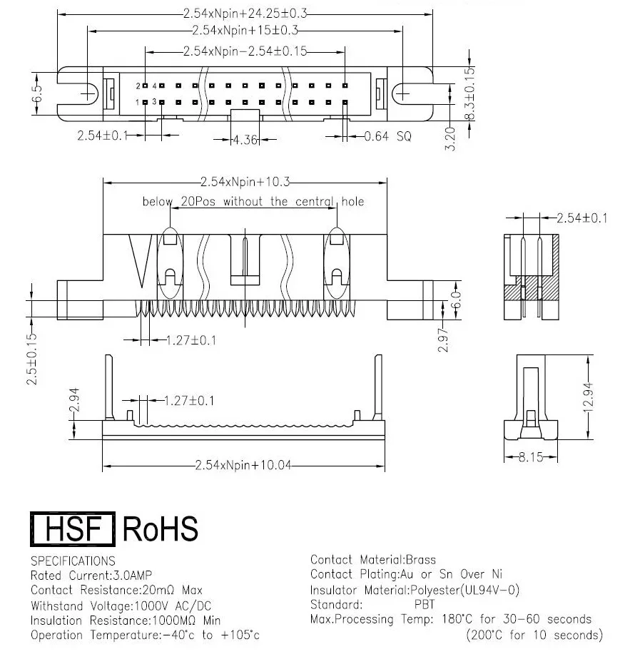 | Pins | 2×10 20P, 2×13 26P, 2×15 30P, 2×17 34P, 2×20 40P, 2×25 50P, 2×30 60P, 2×32 64P, 2×5 10P, 2×7 14P, 2×8 16P |