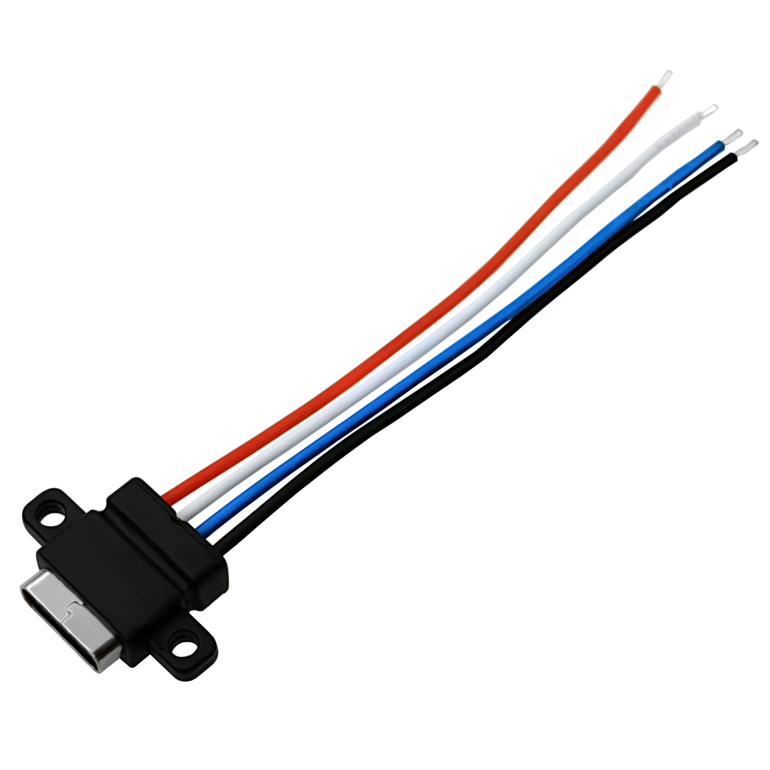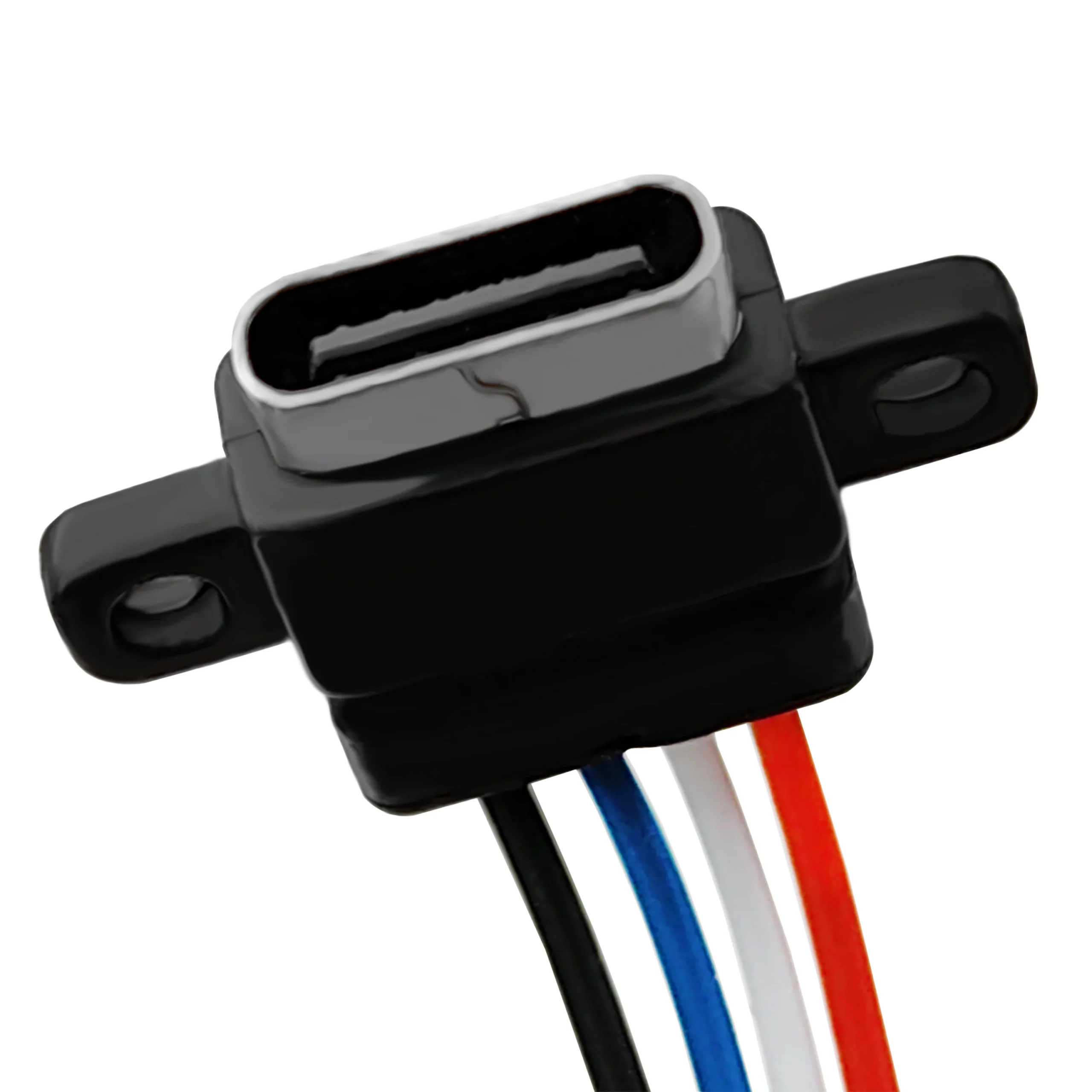 USB 3.1 Type C 4 Pin Waterproof Female USB C Socket Port With Screw Hole Fast Charge Charging Interface USB Connector with cable