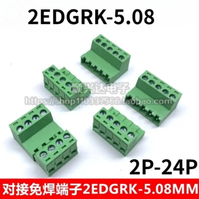 1Sets 2EDG 5.08MM Solder-Free Butt Connection Plug-In Type 2EDGRK-5.08 Pluggable Green Terminal Block 2P-24P